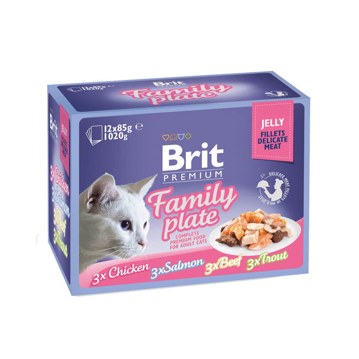 Zestaw Family Plate Brit Premium Cat Pouches Fillets in Jelly, mix smaków w galaretce, 12 x 85g